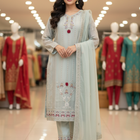 BLUE COTTON NET EMBROIDERED KURTI ₨ 10,000