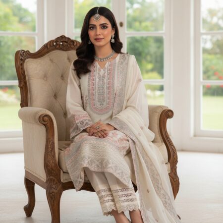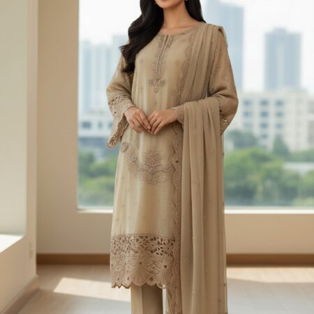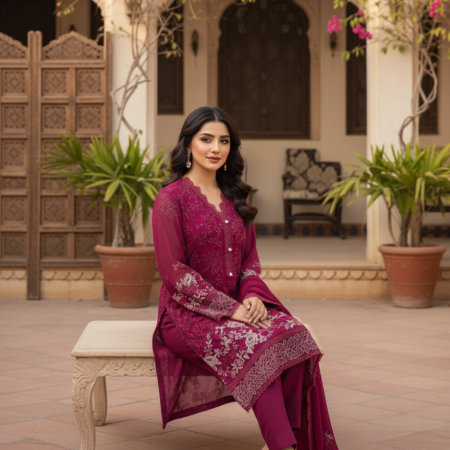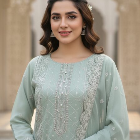 3-piece stitched chiffon suit perfect for semi-formal and formal occasions.