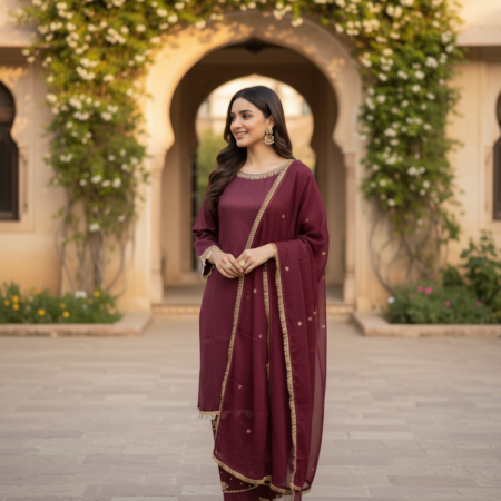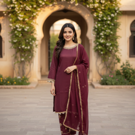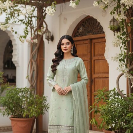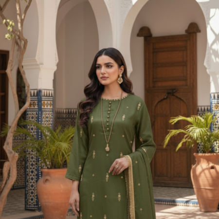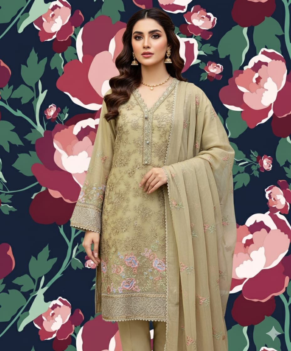3-piece stitched chiffon suit perfect for semi-formal and formal occasions.