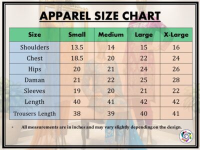 - Shirt: Fully embroidered chiffon shirt with crepe lining.