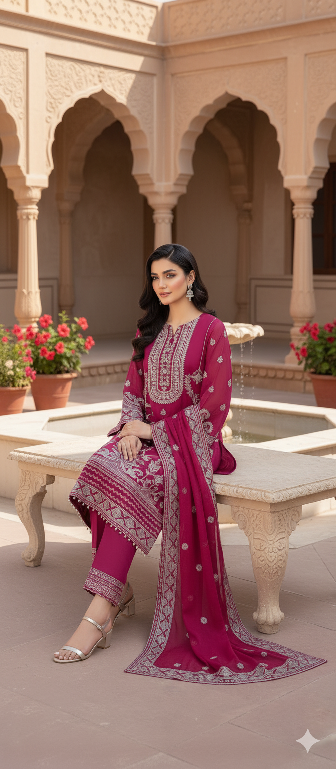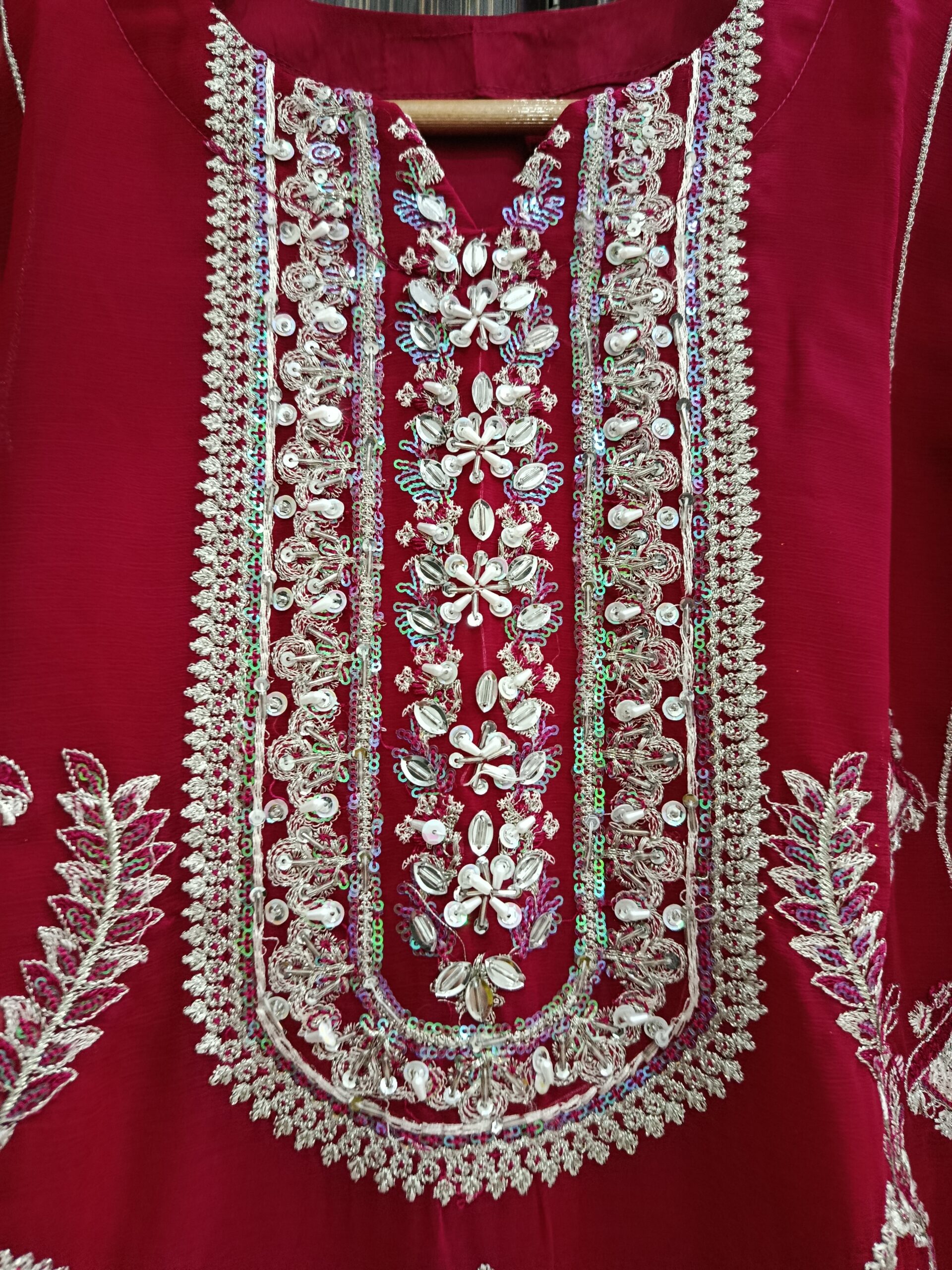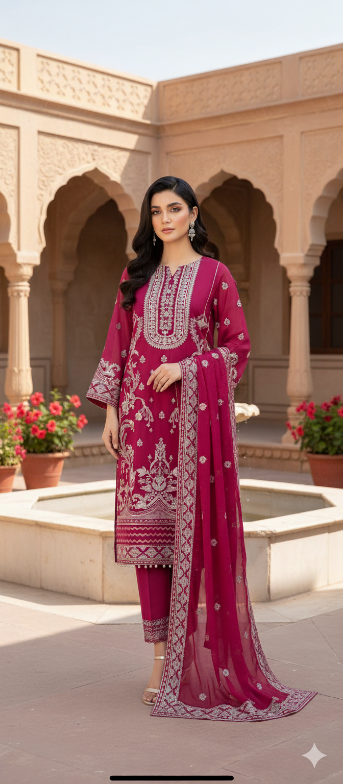 3-piece stitched chiffon suit perfect for semi-formal and formal occasions.