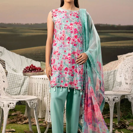 3 Pc Unstitched Embroidered Arabic Lawn Suit