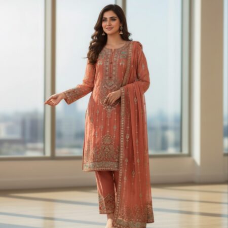3-piece stitched chiffon suit perfect for semi-formal and formal occasions.