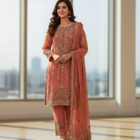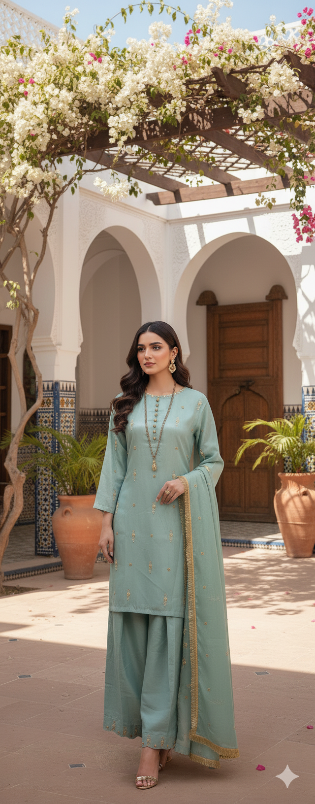 3-piece stitched chiffon suit perfect for semi-formal and formal occasions.