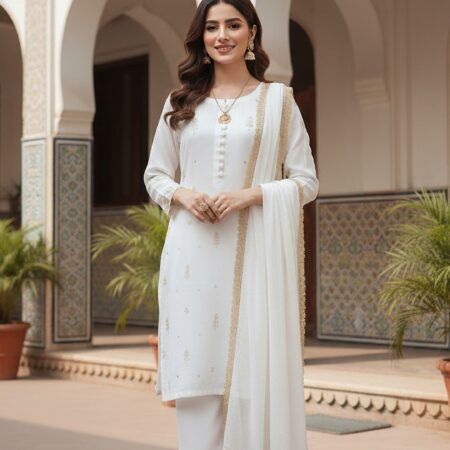 3-piece stitched chiffon suit perfect for semi-formal and formal occasions.